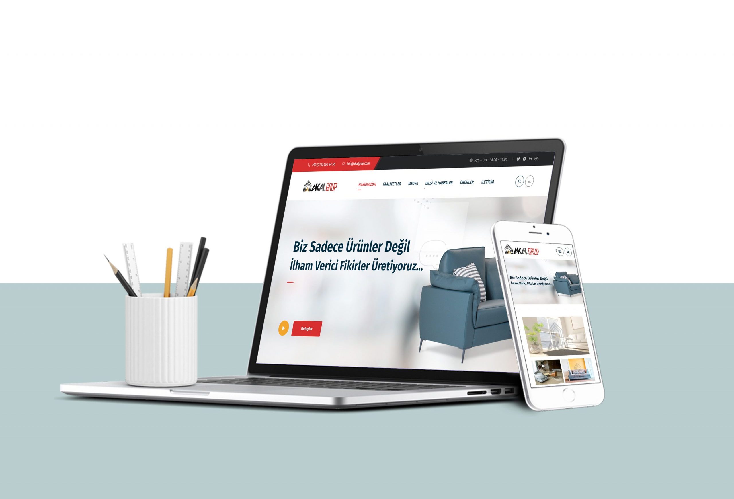 Akal Mobilya Tasarım olarak ilk günden beri estetikten, zarafetten ve işlevsellikten ödün vermeden rahatlığı ve hayat kalitesini ön planda tutarak özgün ürünler tasarlıyoruz. Tasarımın ruhunu ürünlerimizin içine adeta işleyerek sizlere yaşayan ve yaşatan yaşam alanları inşa ediyoruz.